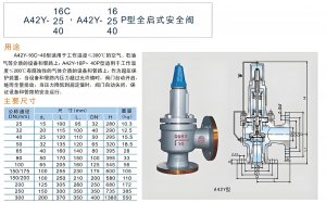 阀门首页 > 阀门知识 > 安全阀知识 > A42Y-16C/DN40安全阀是一种弹簧全启式安全阀,适用于工作温度300℃的空气、石油气、液体等介质的设备和管路上,作为超压保护装置。 产品...